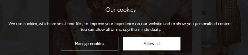 When you see the pop-up cookie notice on a website, you can click through to read which cookies are used. If you don’t see the pop-up, just take a look at the cookie policy which you should easily find, usually in the website’s footer. From here you can decide which cookies you are happy with. It should tell you which are essential for functionality, so don’t disable those.