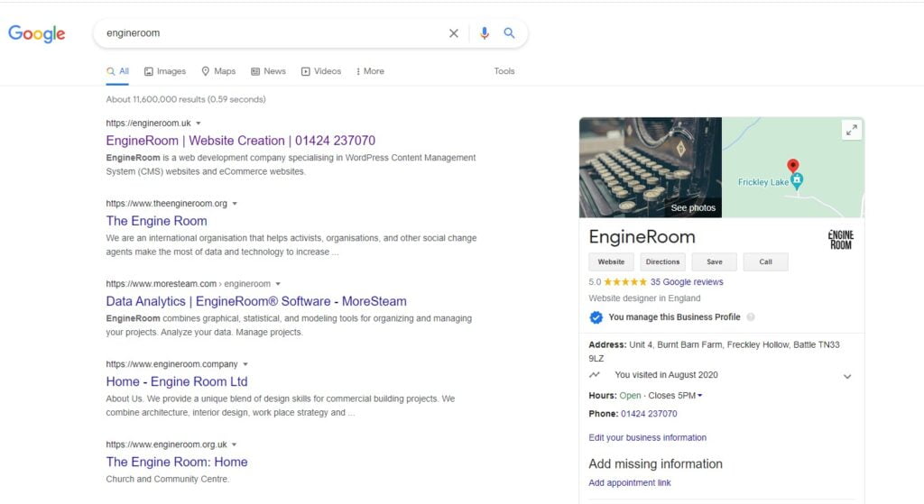 If you’re not already on GMB then it’s time you got it sorted – its free, easy to set up and it should help drive new local customers to your business. If you’d like help setting up your GMB then please get in touch with us at EngineRoom anytime.